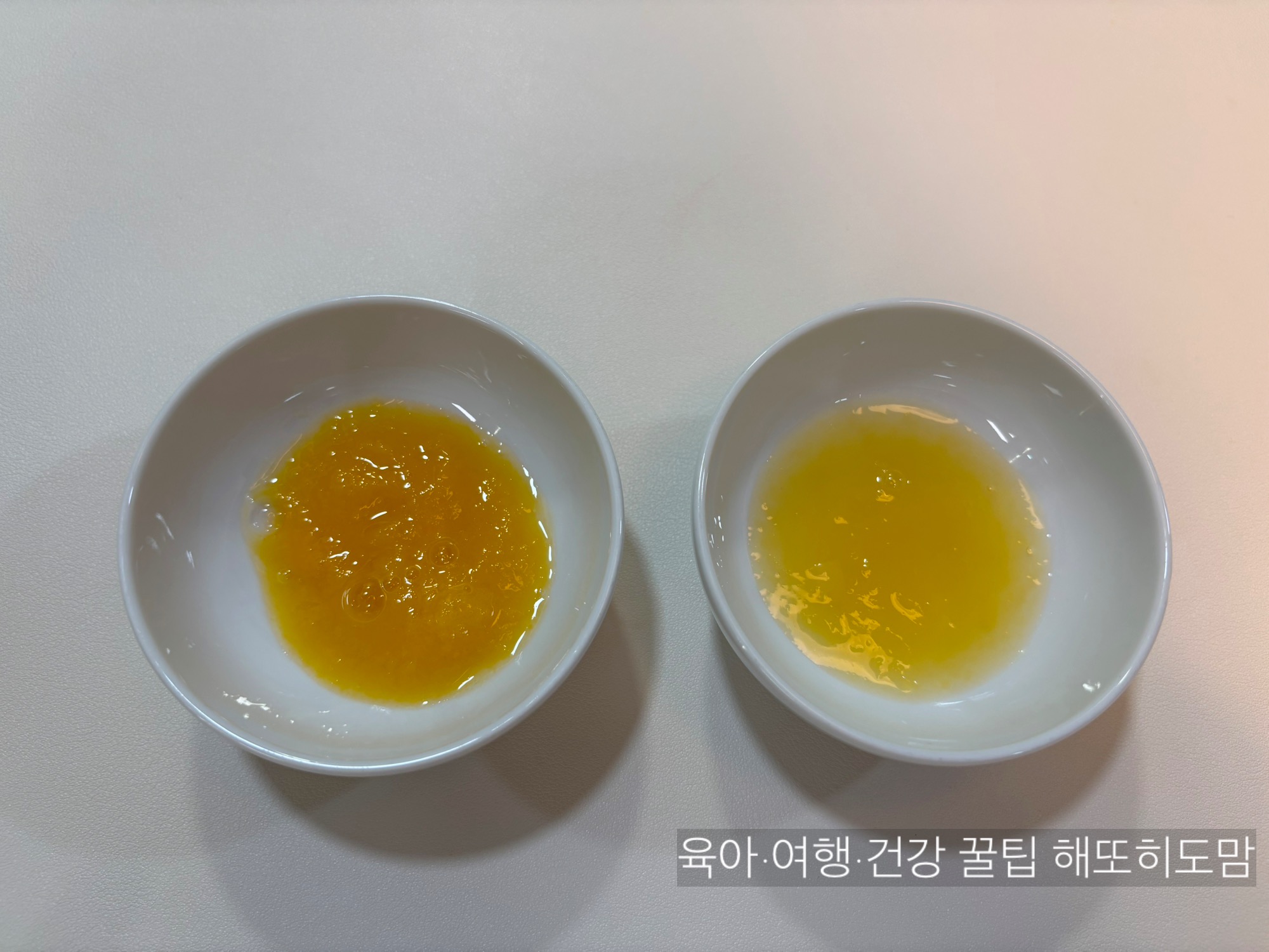 사진처럼 두 제품을 각각 그릇에 덜어봤어요!